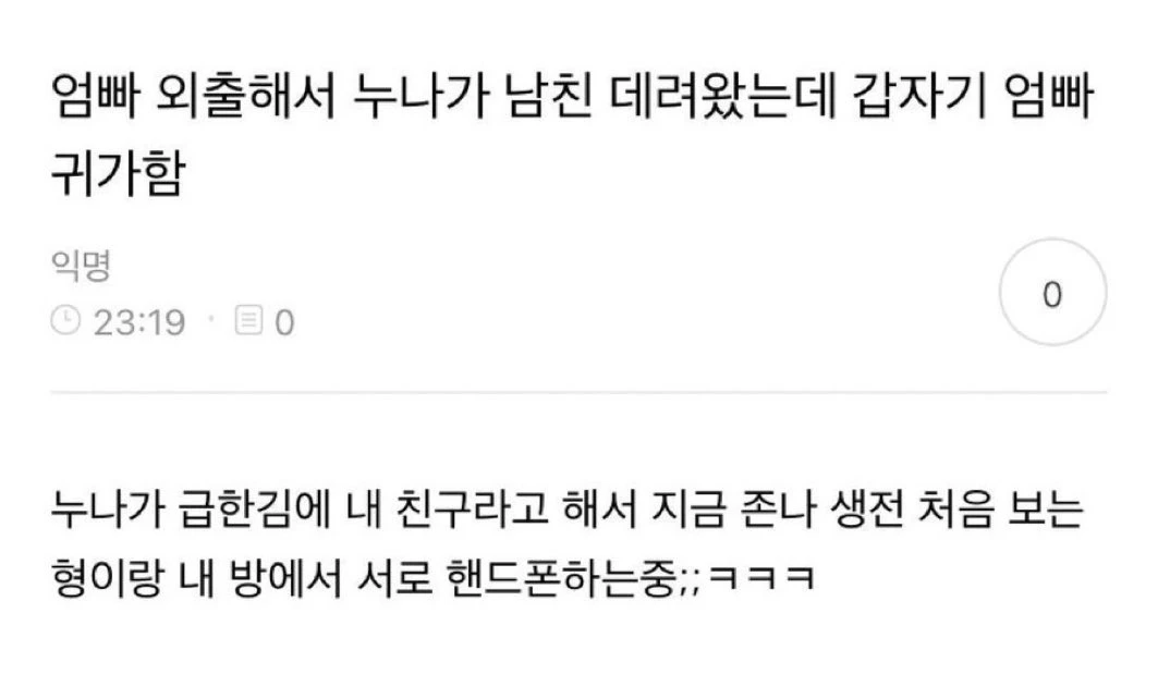 부모님 외출해서 남친 데려왔는데 부모님 돌아오심